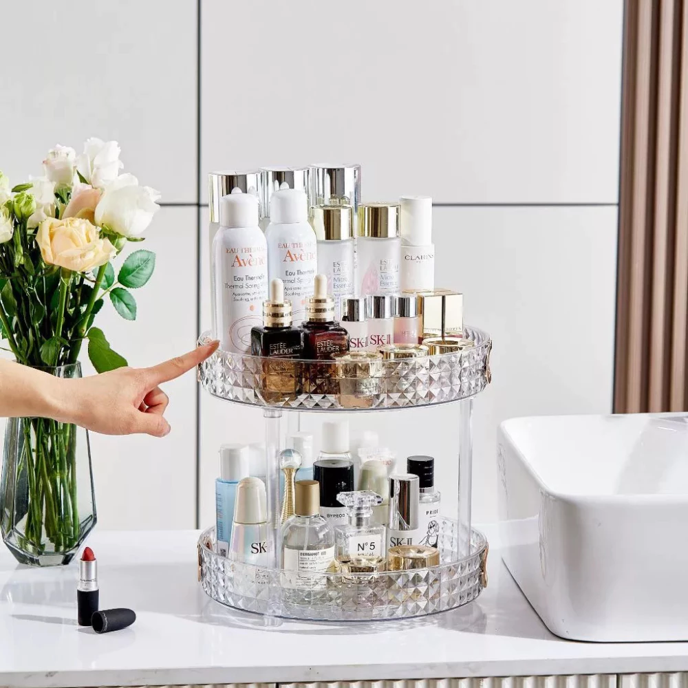 Organizador De Maquiagem Acrílico 360º Organizador De Maquiagem Giratório Com 2 Andares