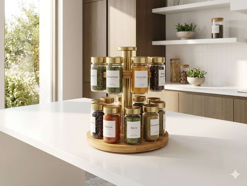 3. Estética e Praticidade: Porta-Temperos Giratório